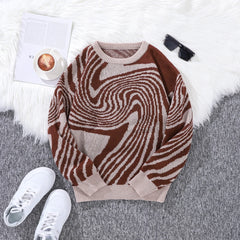 New-Popular-Autumn-and-Winter-Maze-Jacquard-Pattern-Pullover-Sweater-Casual-Round-Neck-Contrast-Color-Knitted
