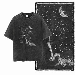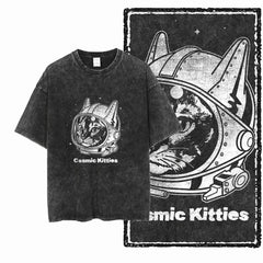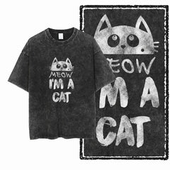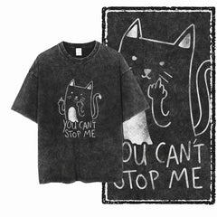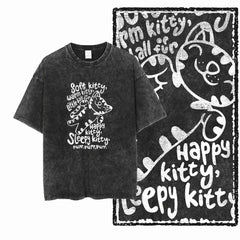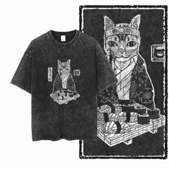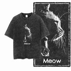COOLMIND DB Cat Acid Washed Graphic T-Shirt