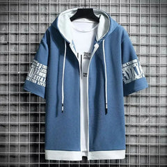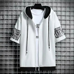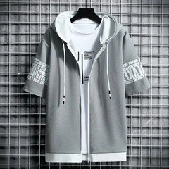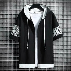Fashion Men's Hoodies Summer Men Clothing T-shirt Zipper Hood Cartoon Casual T Shirt Print Hooded Top Short Sleeve Men