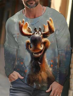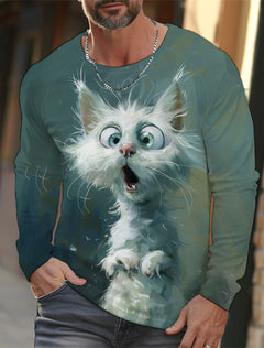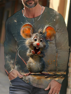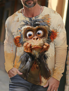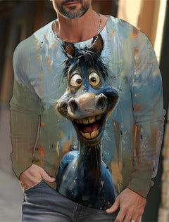 Funny 3D Animal Print Mens Top Fashion Cotton Long Sleeve T-shirt Men