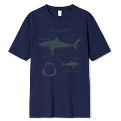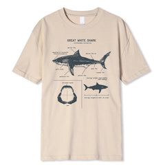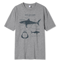 Great White Shark Anatomy T-Shirt New Summer Men Street Short Sleeve Hip Hop Punk Style Boy Casual Tops Fashion White Tees