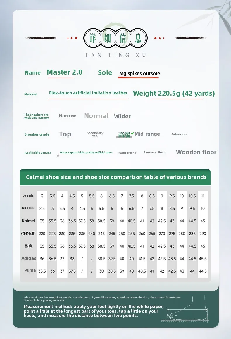 | MG (Multi-Ground) Short Spikes | Optimal traction on artificial turf (AG) and ideal grip for indoor surfaces. Prevents slippage and allows for quick cuts. |