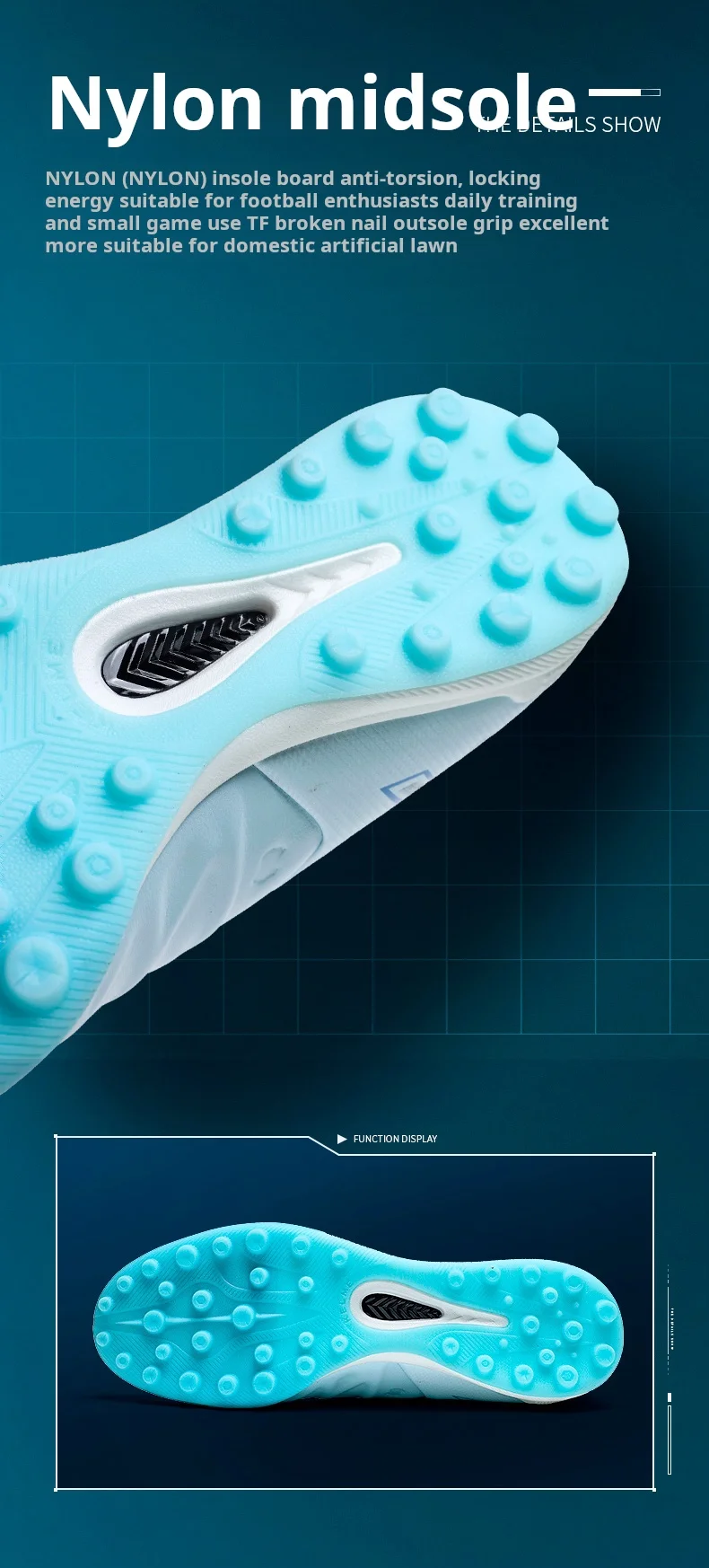 Optimal TF (Turf) Outsole: The specialized rubber outsole features numerous short, robust studs, engineered specifically for maximum grip and stability on artificial grass (TF) surfaces.1 Maintain your footing during quick cuts, sprints, and tight turns.