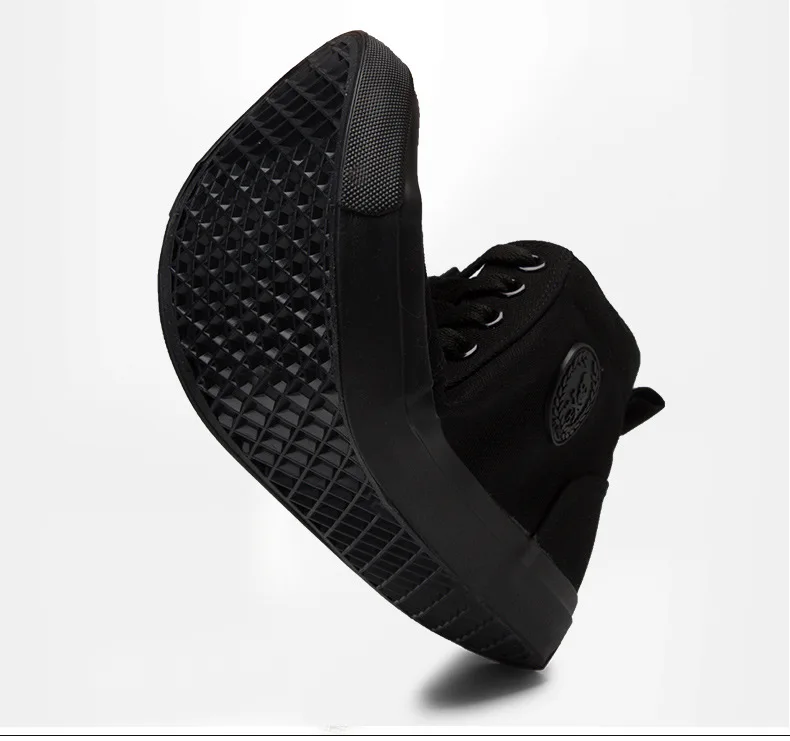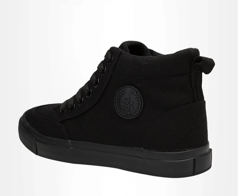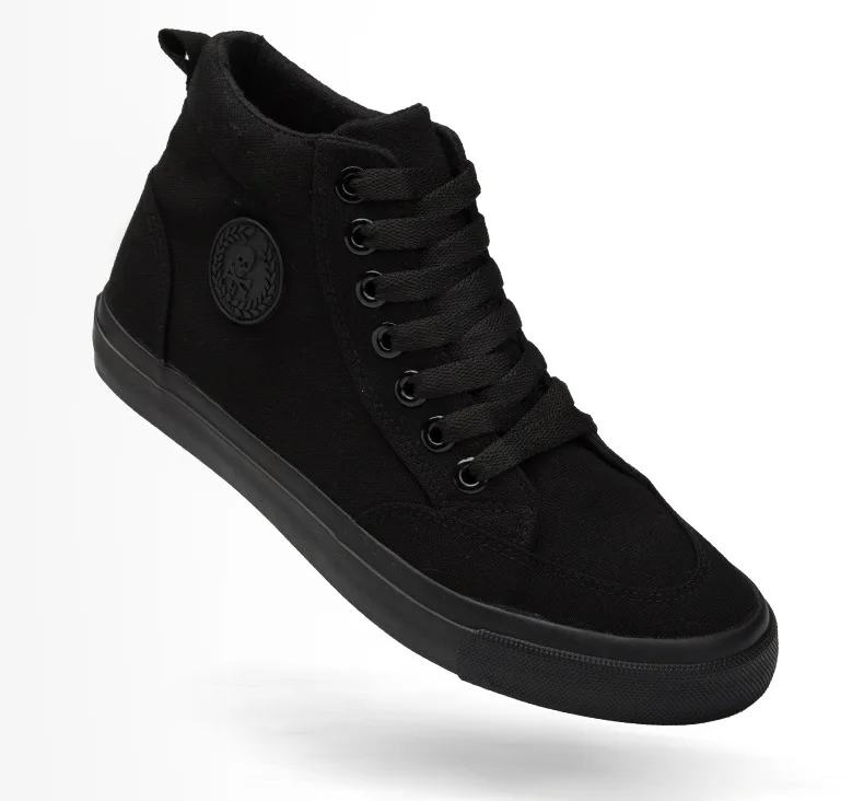 Men's High-Top Canvas Sneakers Slip-On Lace-Up Casual All-Black Basic Skate Shoes for Students Flat Sole Comfortable Sport Shoes