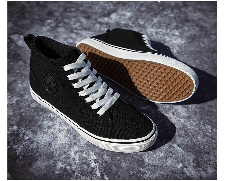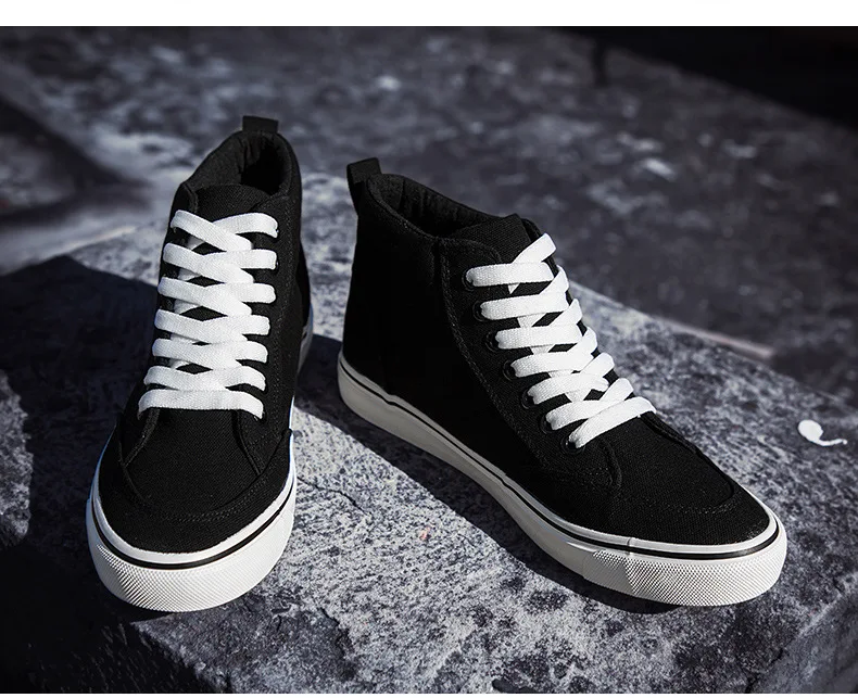 Step up your casual game with these classic, versatile Men's High-Top Canvas Sneakers. Designed for students and anyone seeking effortless, all-day comfort, these all-black kicks are the ultimate wardrobe staple.