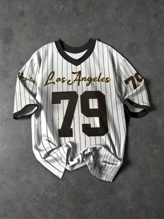 Elevate your summer wardrobe with this stylish V-neck sports tee, blending vintage baseball aesthetics with a modern, chic fit.