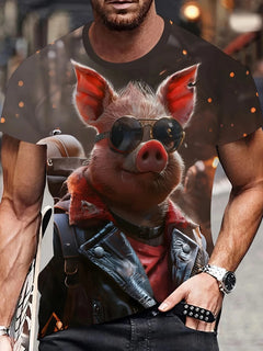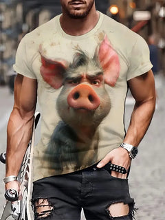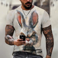 Angry Animal Print Summer Men's T Shirt Casual Short Sleeve Fashion Streetwear Male Oversized Clothing Crew Neck T-Shirts