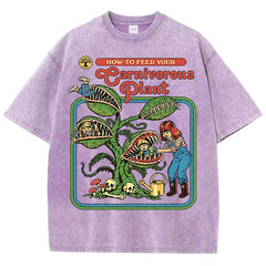Earnivorous Plant Pattern Washed T-Shirts Men Breathable Cotton Casual T Shirt Soft Summer Comfortable Crewneck Short Sleeve