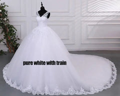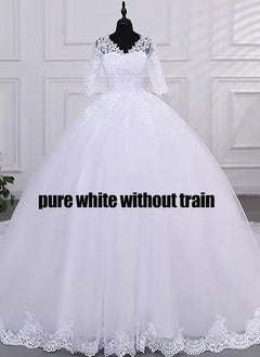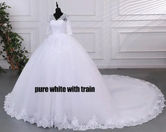 Pure White Wedding Dresses Elegant Boat Neck Ball Gown Simple Vestido De Noiva Plus Size Robe De Mariee