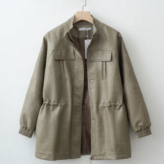 Crafted for the modern woman, this outerwear piece redefines the classic leather look. The standout feature is the elastic adjustable waist, allowing you to customize the fit—whether you prefer a structured, cinched-in profile or a relaxed, casual drape. Made from high-quality, supple vegan leather, it provides the perfect weight for autumn breezes while maintaining a high-fashion aesthetic.