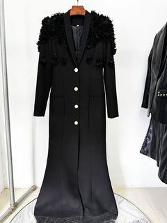 Step into the spotlight with the Floral Appliqué Beaded Maxi Dress, a breathtaking piece from our 2025 Designer Collection. This gown is an exquisite testament to artisanal craftsmanship, blending modern silhouette with classic, romantic detailing. Perfect for black-tie galas, high-profile weddings, or any occasion demanding unparalleled glamour.
