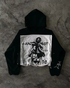 Embrace the dark aesthetic with this Y2K-inspired staple. This slim-fit black sweatshirt blends Harajuku-style edge with cozy winter functionality. Featuring a plush faux-fur collar and striking letter graphic prints, it’s the perfect statement piece for those who love a bold, rebellious look.