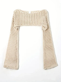 Women Crochet Knit Hollow Out Crop Top Long Sleeve Shrug Sweater Mesh Cover Ups Cardigan Streetwear Pullover Women Clothes Y2k