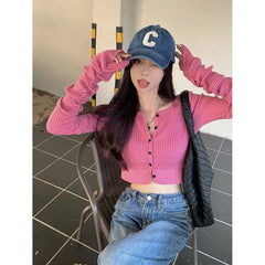 This top is perfect for any occasion, from casual to party. It is available in a range of sizes and is sure to make a statement. With its unique design and eye-catching colour, the Y2k Pink Knitted Cropped Top is sure to be a hit.